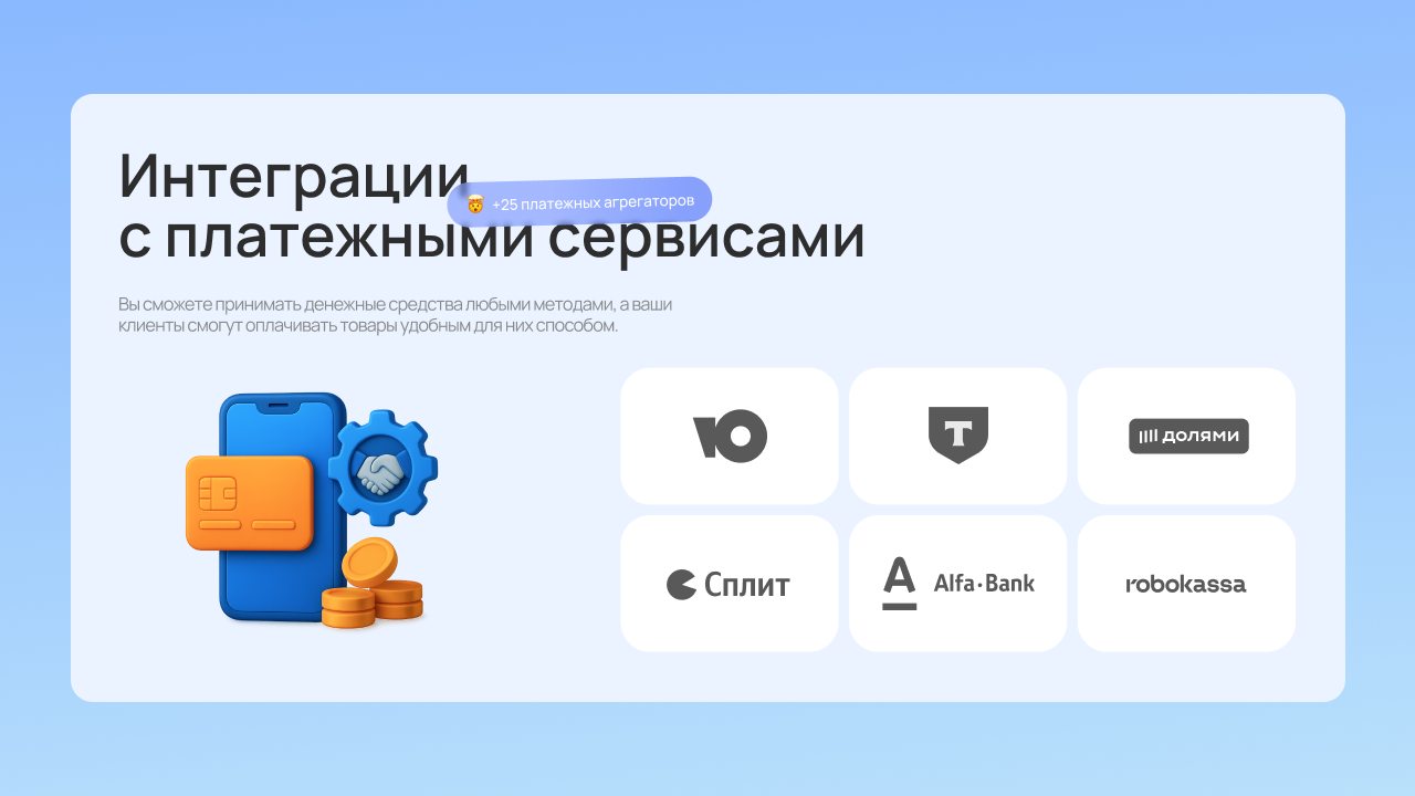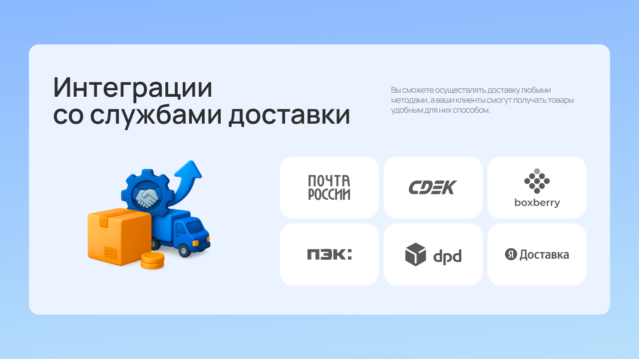 Интеграции с маркетплейсами, платёжными системами, логистикой