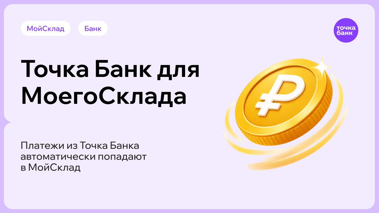 Приложение загружает все входящие и исходящие платежи из Точка банк в МойСклад автоматически каждый час или вручную за любой период.