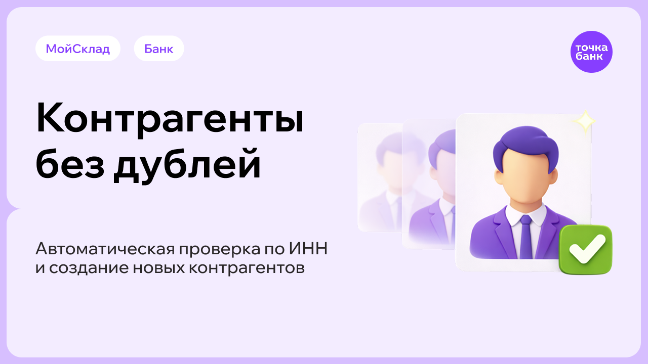 Приложение само находит контрагента в базе МоегоСклада по ИНН или создает новую карточку, если его еще нет.