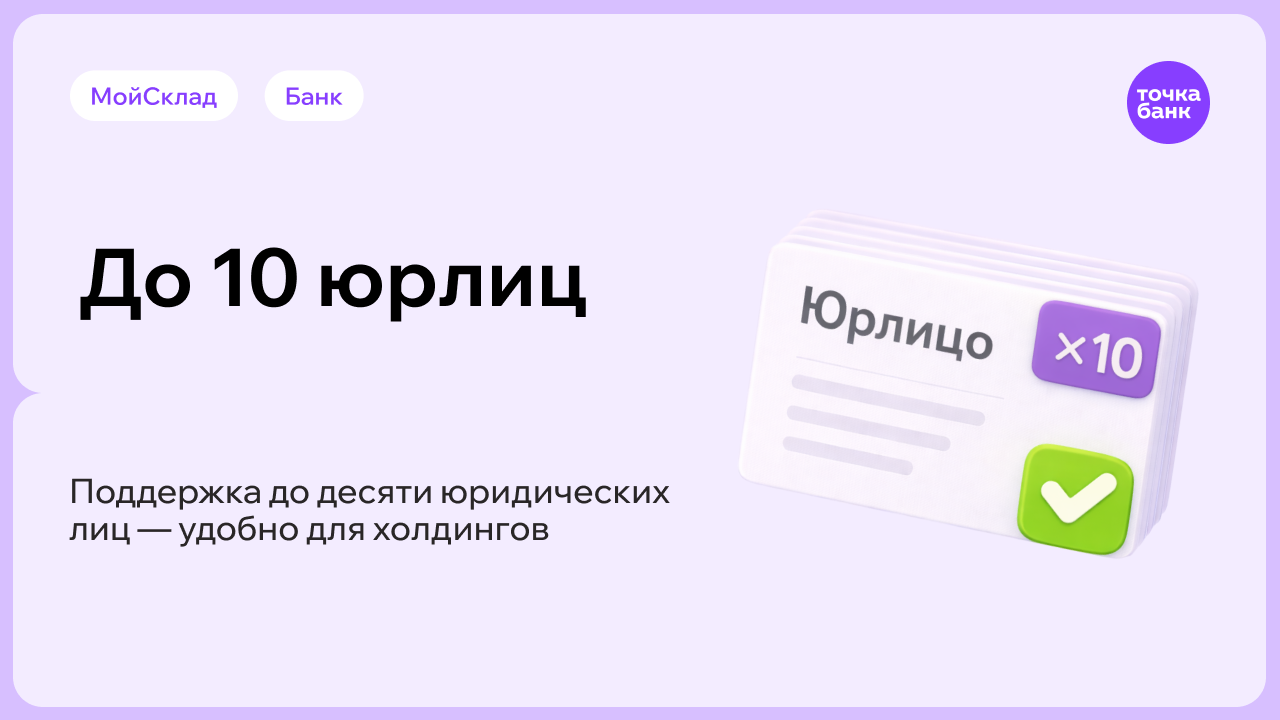 Интеграция позволяет подключить до 10 юридических лиц в одном приложении.