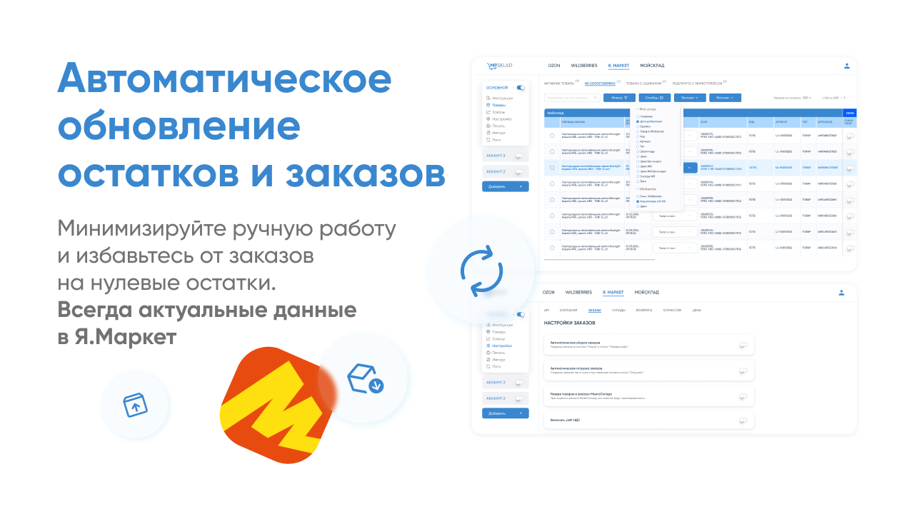 Приложение поддерживает схемы продаж FBS и FBY и обеспечивает синхронизацию заказов, остатков, цен и товаров между Яндекс Маркет Узбекистан и МойСклад.
