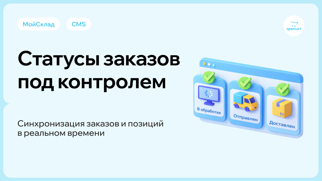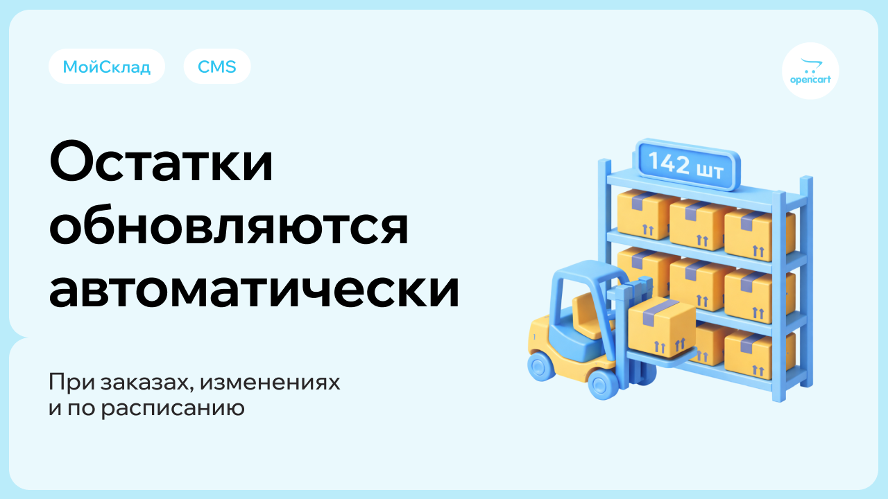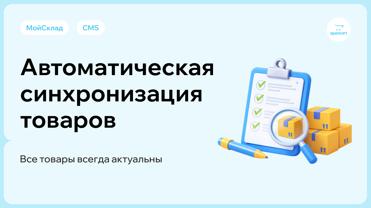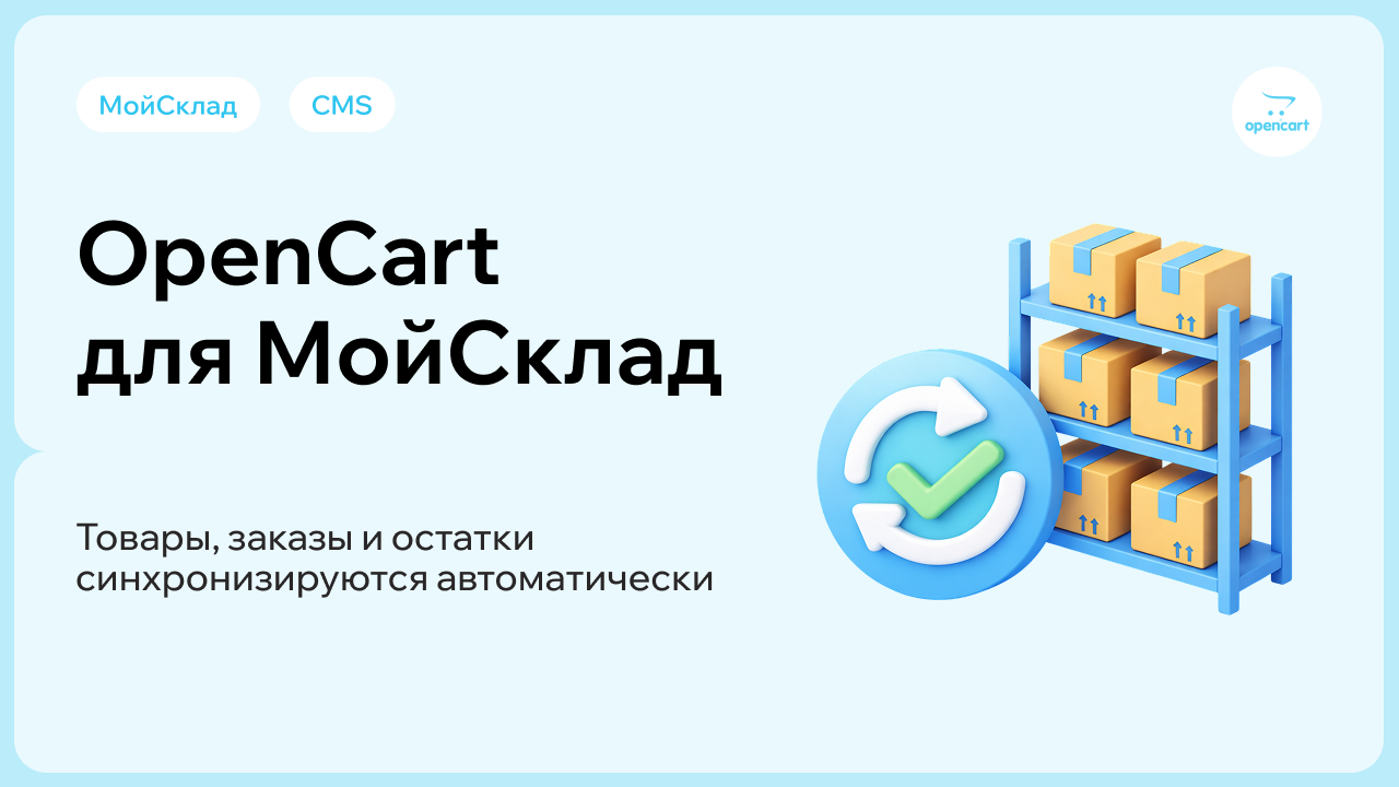 Решение позволяет автоматически синхронизировать товары, заказы и остатки между МойСклад и OpenCart.